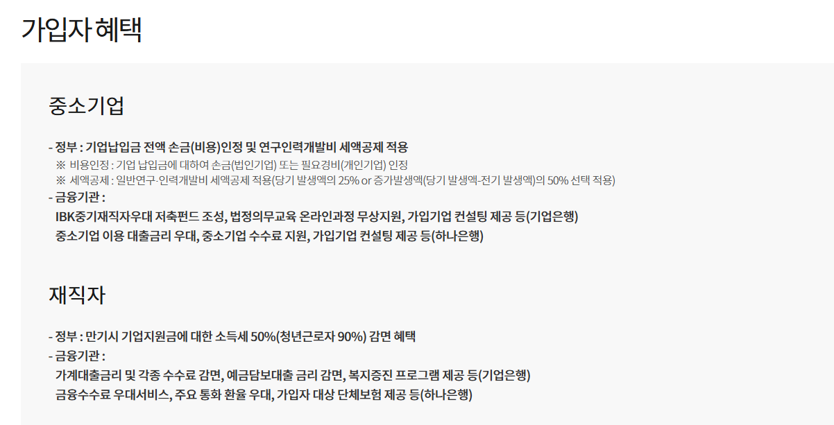 그러나 근속 기간이 3년 이상일 경우에는 본인이 납입한 원금과 이자는 전액 받을 수 있습니다. 또한 기업이 납입한 지원금은 근속 기간에 비례하여 일부를 받을 수 있습니다.