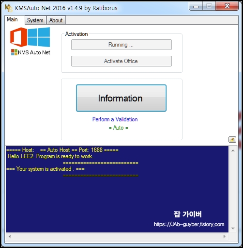 KMSAutoNet 프로그램을 다운로드 후 실행합니다.