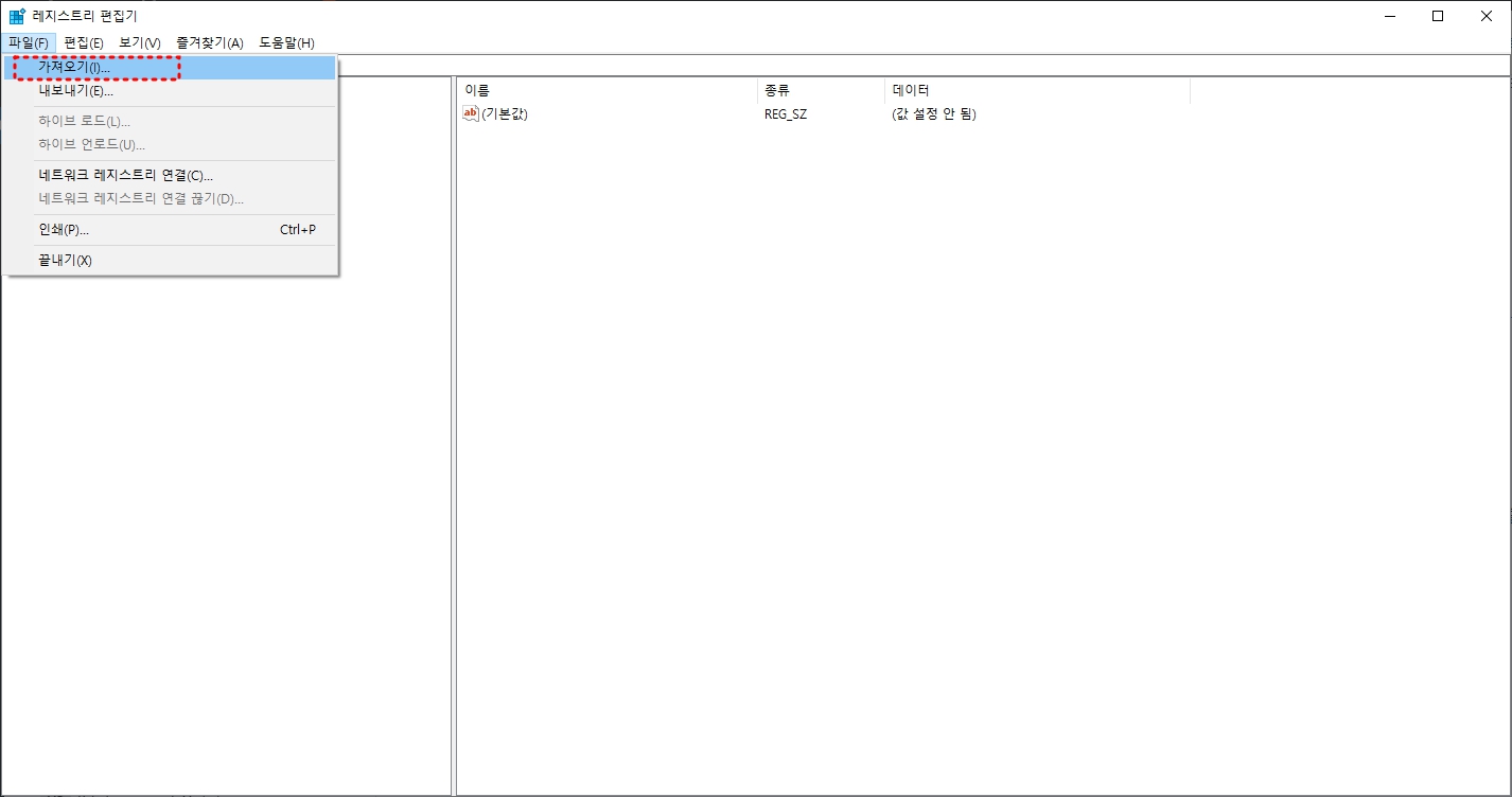 레지스트리 편집기를 열 필요 없이, 백업 시 생성한 *.reg 파일을 더블 클릭합니다.