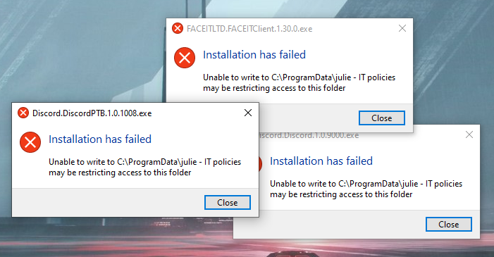 디스코드 Installation has failed Unable to write tooaccess to this folder 오류