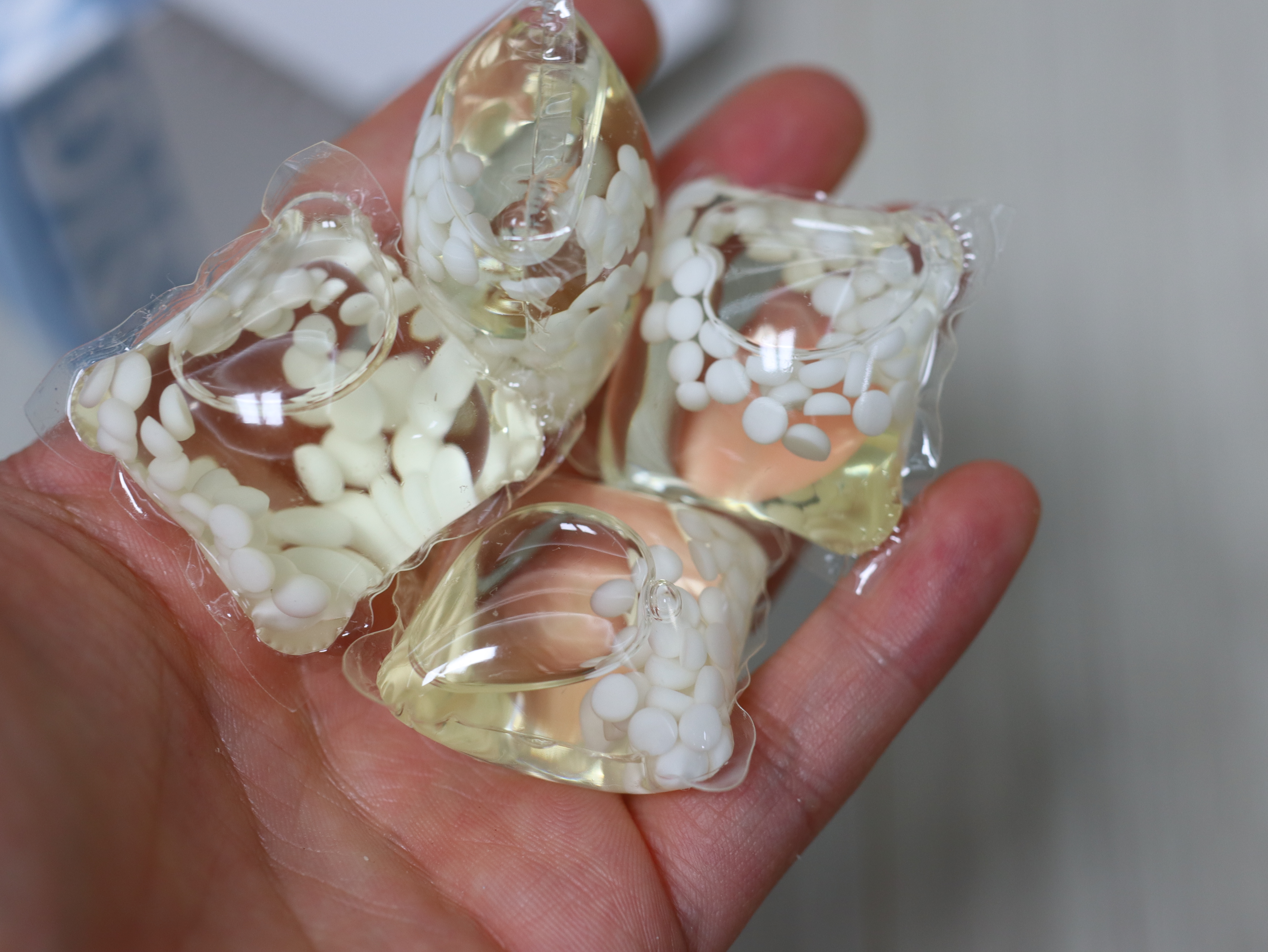 - 세탁기 세제 투입구에 직접 넣지 말고, 물과 함께 희석되도록 캡슐세제는 통 안에 바로 넣어주세요. 투입구에 남은 잔여물이 세탁기 고장의 원인이 될 수 있습니다.