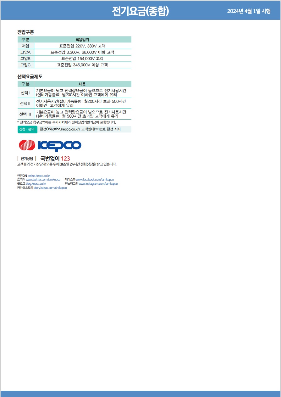 복잡한 경우에는 한전 전력서비스센터(국번없이 123) 로 문의하여 기술지원 요청도 가능합니다.