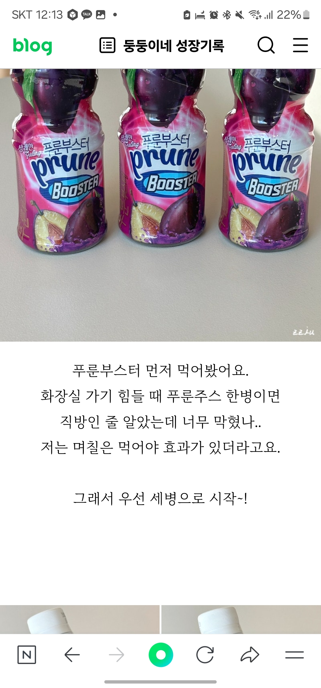 그리고 현재 포스팅하는 시점은 3일차 두 번째 잔을 마신 후에는 즉각적인 반응은 없었지만, 첫 번째 경험을 통해 알 수 있듯이, 푸룬주스의 효과를 체감하기까지는 다소 시간이 필요할 수 있습니다. 앞으로 일주일간 지속적으로 섭취하면서 변화를 지켜볼 계획입니다.