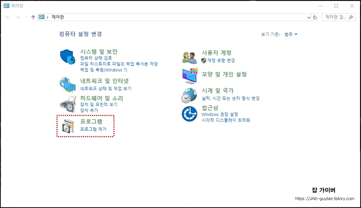 인터넷 보안 프로그램을 삭제하기 위해서는 제어판 - 프로그램 제거를 클릭합니다.