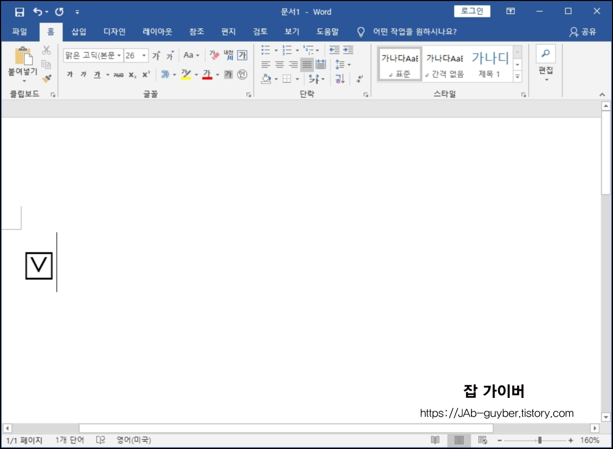 엑셀 워드 V 체크 특수문자 방법 - ✓, ✔, ☑