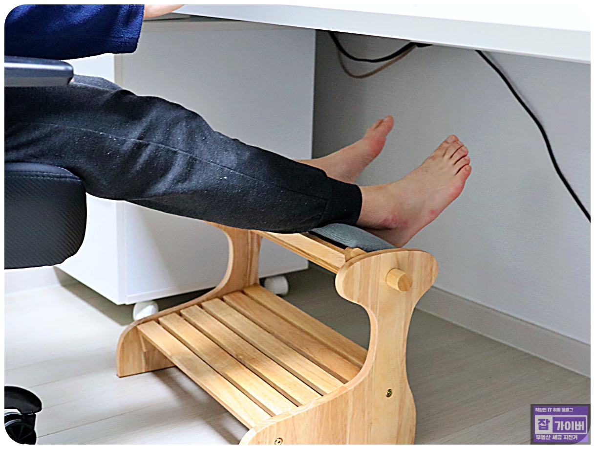 무엇보다 이 발받침대를 사용하면서 가장 놀라웠던 점은 다리의 불편함이 크게 줄었다는 점이었습니다. 평소 책상 앞에 오래 앉아 있으면 다리가 저리거나 다리를 자주 꼬는 습관이 있었는데, 이 제품을 사용한 후 자연스럽게 다리를 꼬지 않고 올바른 자세를 유지하게 되었어요.