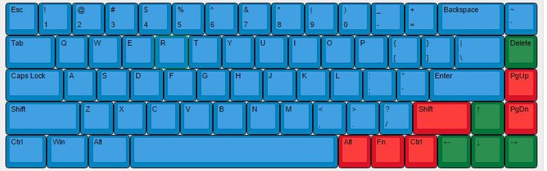 ✅ 68키 전후의 구성으로, 방향키와 일부 편집키를 포함