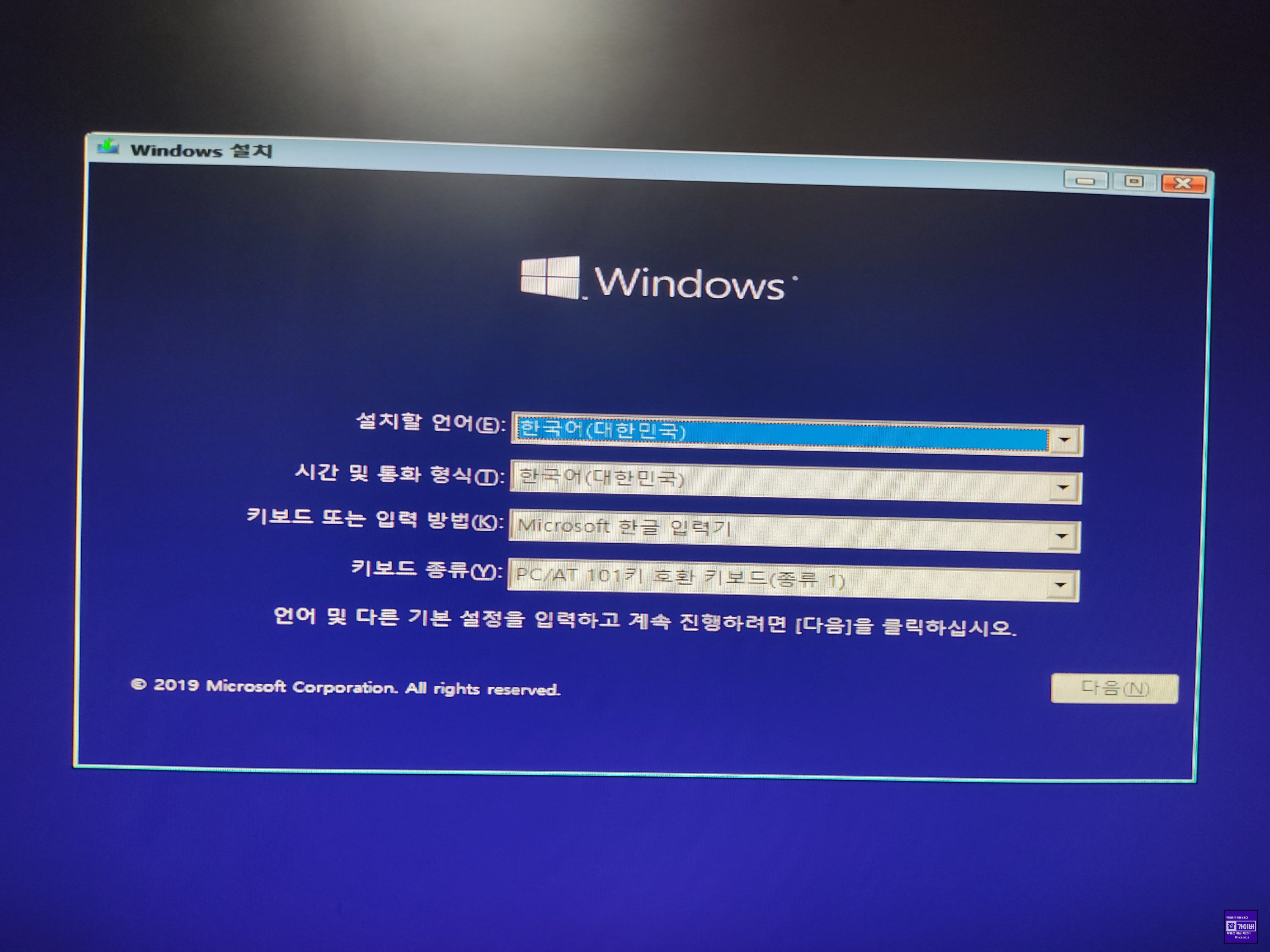 - 윈도우 설치 미디어를 사용하여 부팅합니다.