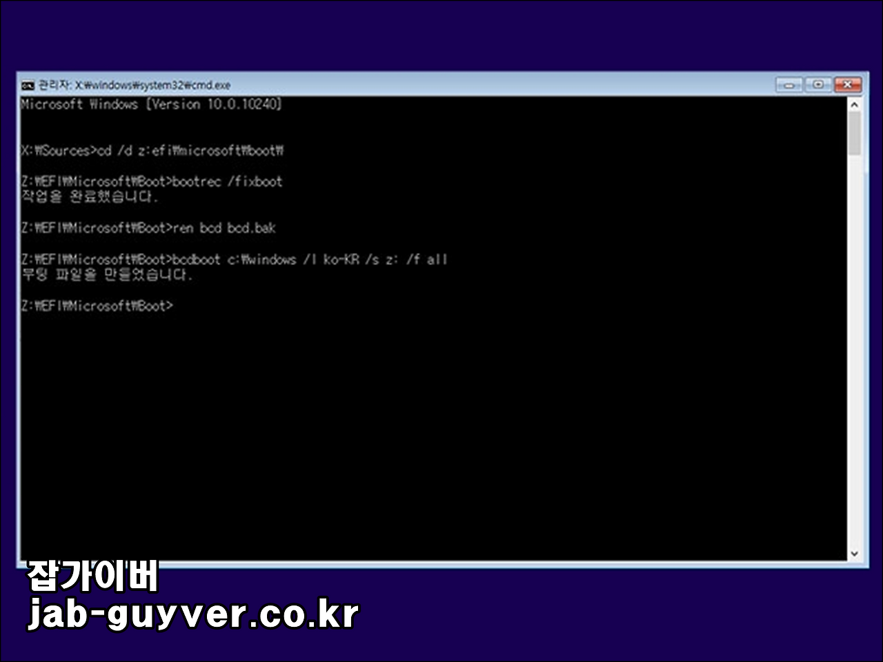 - 그럼 BCD 재구성 작업이 완료되면 시스템을 다시 시작합니다.