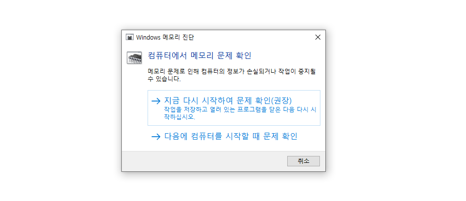 - 간헐적 오류일 경우, 여러 번 테스트하거나 메모리 모듈을 슬롯 교체하여 테스트 필요