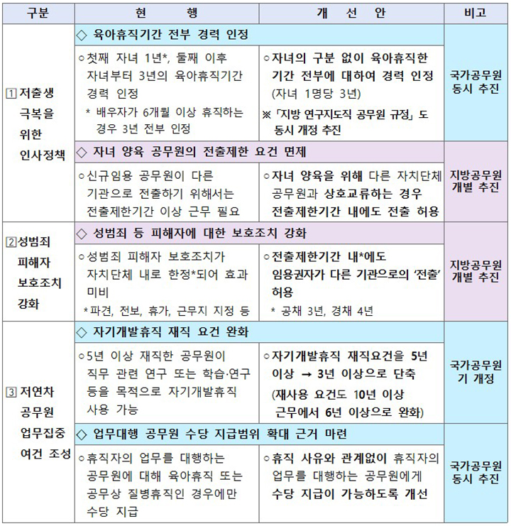 이번 개편을 통해 공무원도 경력 걱정 없이 아이를 키울 수 있는 환경이 마련되길 바랍니다!