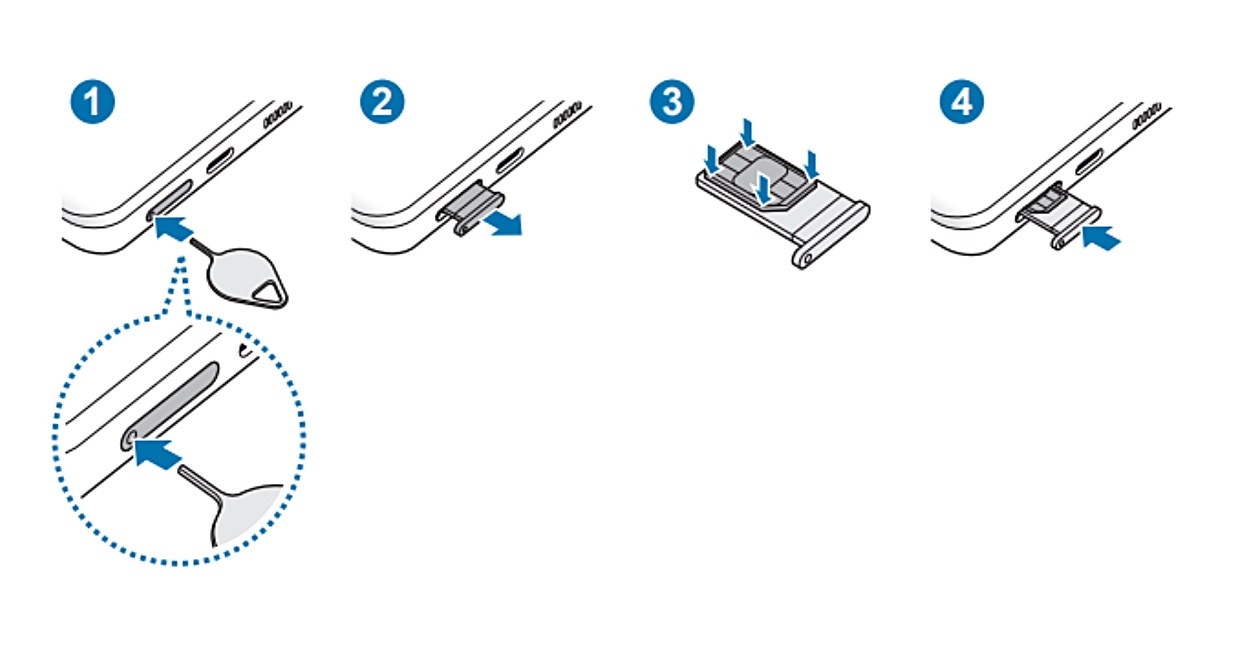 그래도 해결되지 않는다면 유심을 한 번 제거했다가 다시 장착하는 방법을 시도할 수 있습니다. 트레이 분리 핀을 이용해 유심 트레이를 꺼낸 후, 유심의 금속 단자를 부드러운 천으로 닦고 다시 올바르게 삽입해 주세요.