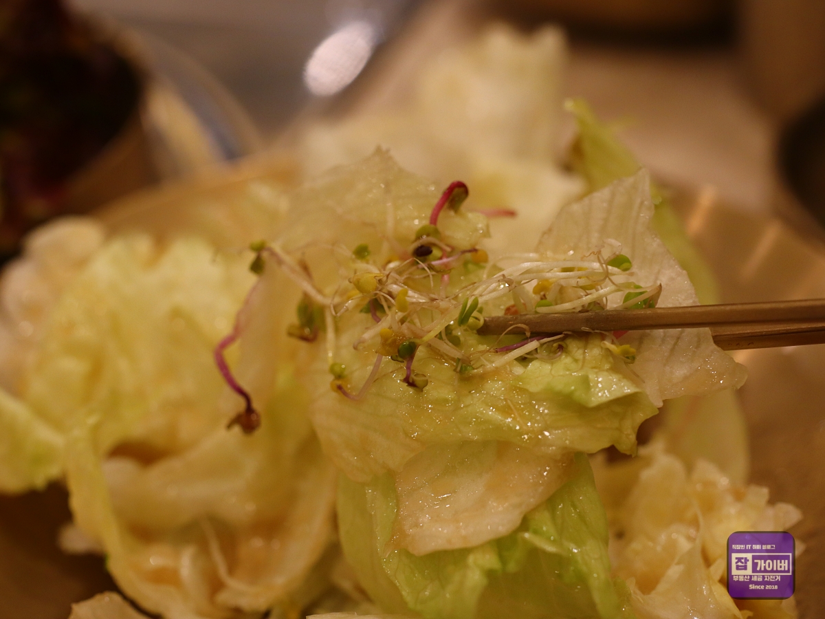 LA갈비 정식이 나오기 전에 기본 상차림이 이미 세팅되어 있었는데, 아삭아삭하고 싱싱한 양배추 샐러드는 입맛을 돋우기에 딱 좋았어요.