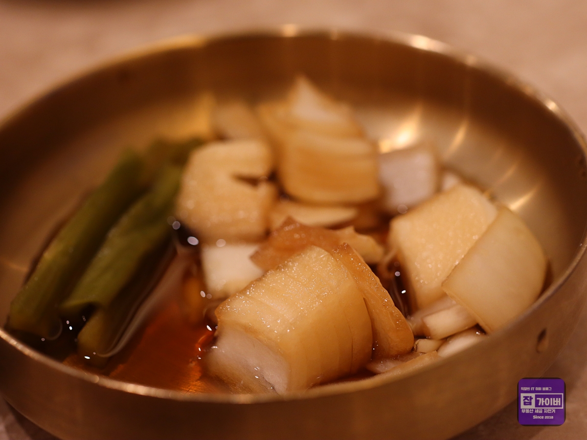 손두부는 부드럽고 고소한 맛이 입 안에서 부드럽게 퍼져요. 양념장과 함께 먹으면 더욱 맛있지만, 저는 담백한 두부만 먹어도 충분히 만족스러웠어요. 두부의 고소함이 그대로 살아있어 그 자체로도 훌륭한 별미였죠.