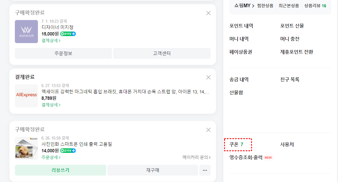 - 좌측 메뉴에서 ‘쿠폰’ 클릭