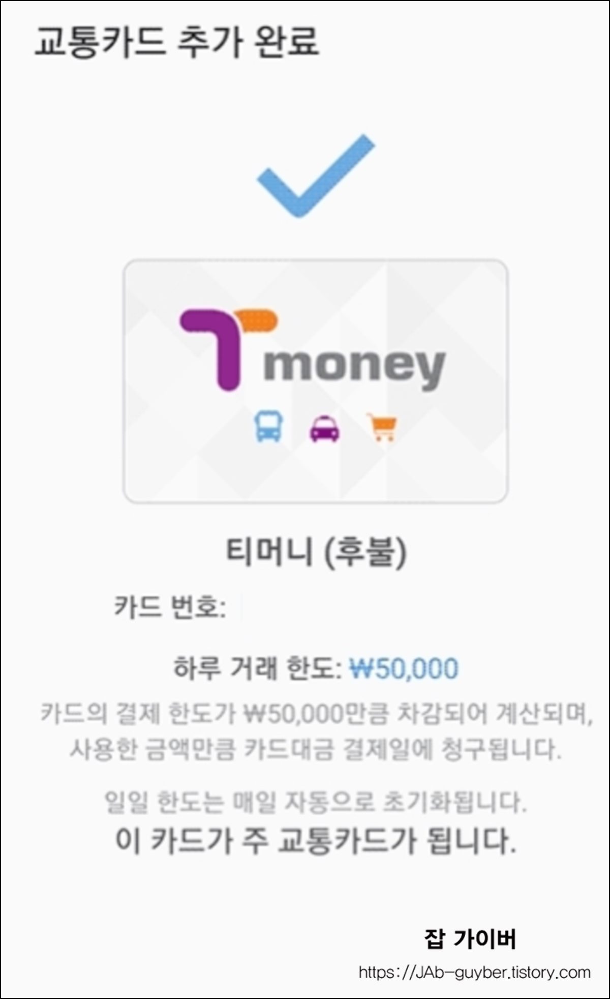 - 티머니 혹은 캐시비 카드 생성 및 기존 카드 연결