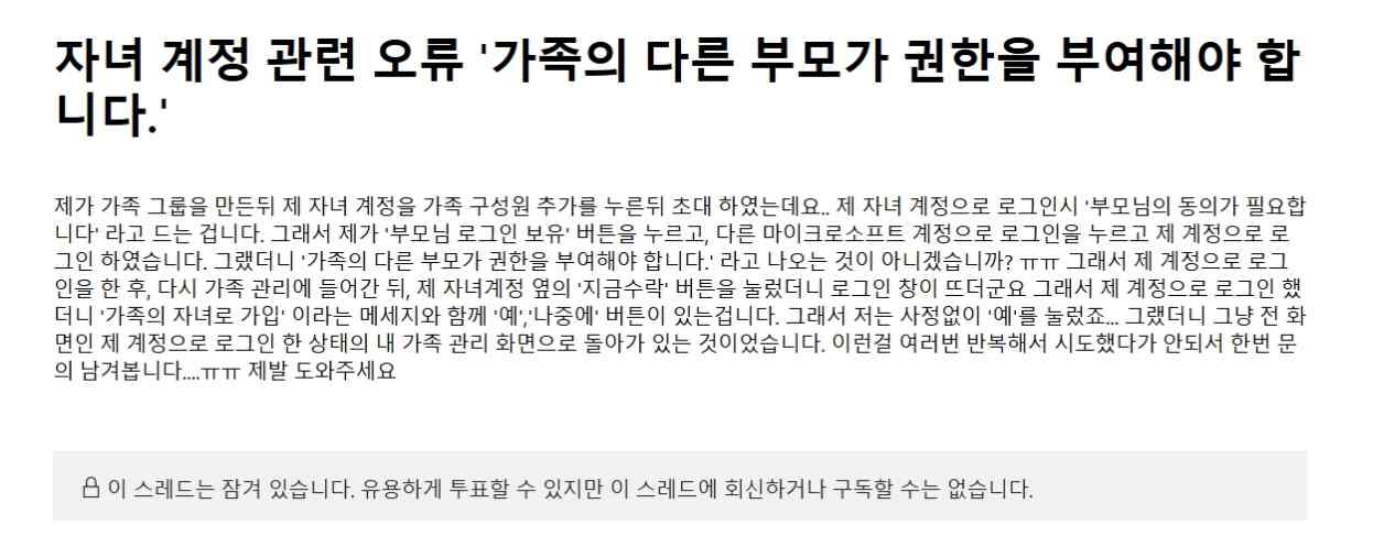 - 마이크로소프트 계정 생성 시 입력한 생년월일 정보에 따라, 만 19세 미만으로 인식되면 제한이 발생합니다.