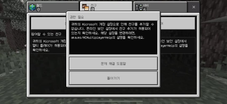 - "귀하의 Microsoft 계정 설정으로 인해 온라인 멀티 플레이 게임을 할 수 없습니다."