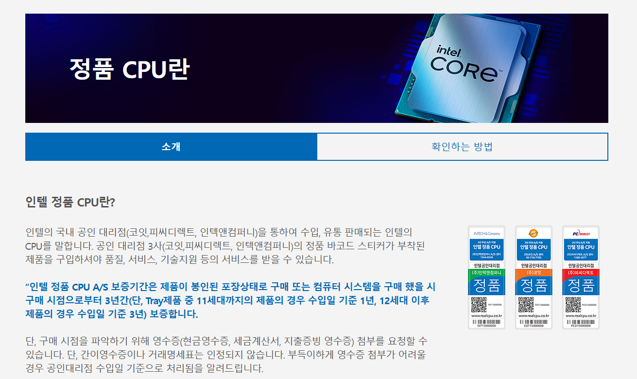 💡 정품 CPU는 반드시 공식 공인 대리점에서 구매해야 합니다!