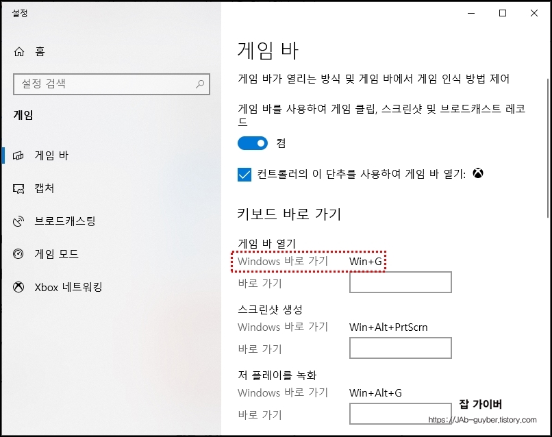 윈도우 10의 화면 녹화 기능은 '게임 바(Game Bar)'를 통해 제공됩니다.