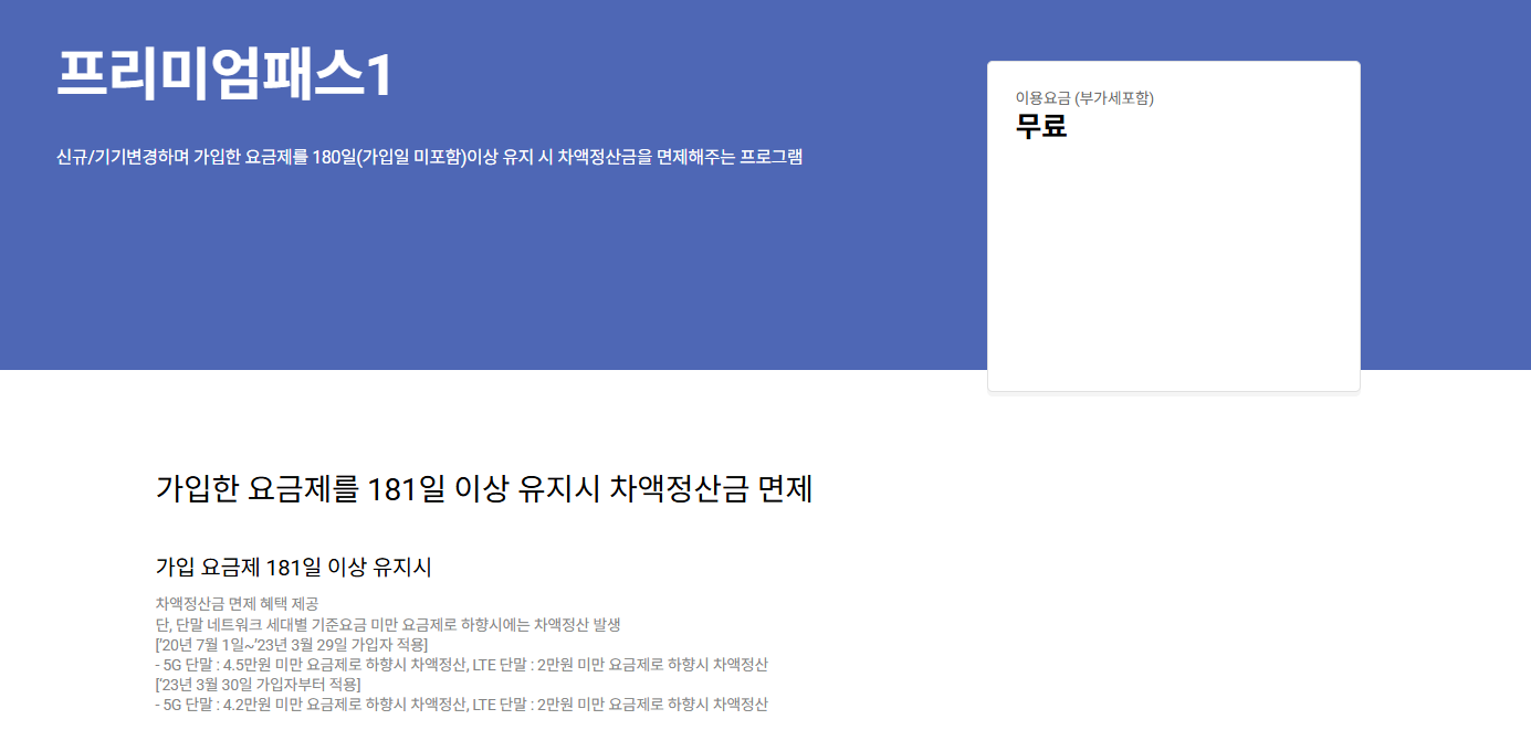 SK텔레콤은 기존에 ‘프리미엄패스1’이라는 부가서비스를 통해 5G 요금제를 180일 이상 사용한 뒤 낮은 요금제로 바꾸면 차액정산금(공시위약금)을 면제해주는 정책을 운영해왔습니다.