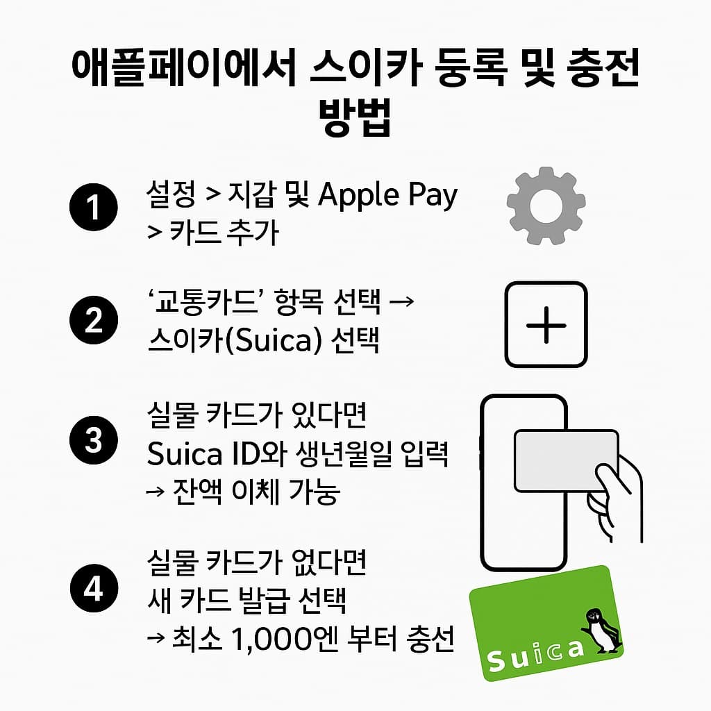 일본을 자주 방문하거나 일본 교통카드를 스마트폰에서 편리하게 사용하고 싶은 분들이라면, 애플페이(Apple Pay)에 스이카(Suica) 카드를 등록하는 방법을 알아두면 무척 유용합니다.실물 카드를
