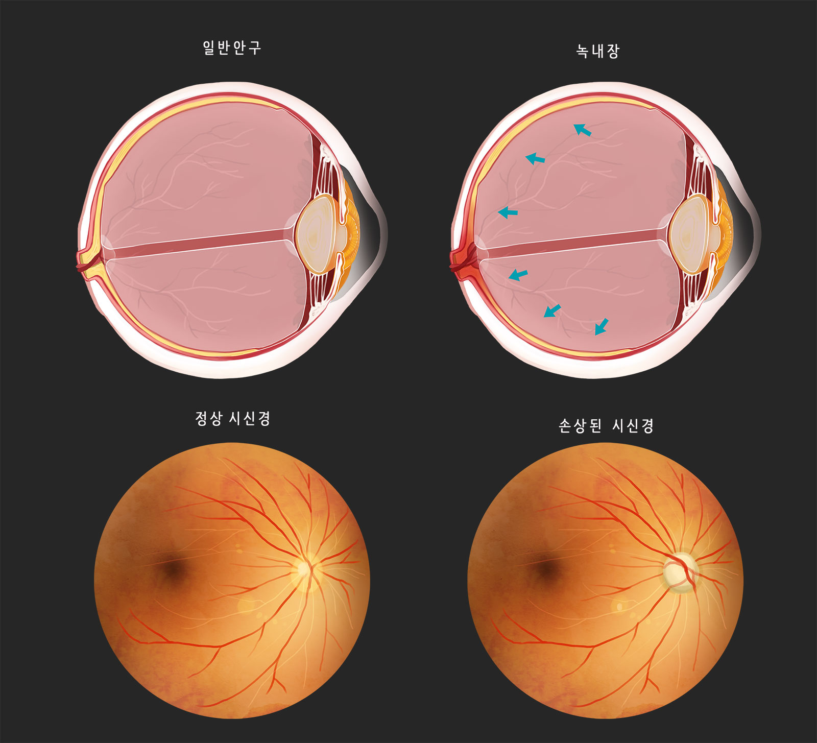 녹내장은 주로 안압 상승으로 인해 시신경이 손상되면서 점차 시야가 좁아지고, 방치할 경우 실명에 이르는 질환이지만 보통 안압이 정상이어도 시신경 손상이 진행되는 ‘정상안압녹내장’도 매우 흔해, 단순히 안압 수치만으로 안심할 수 없습니다.