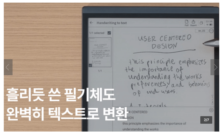 셋째, 필기한 내용을 자동으로 텍스트로 변환하는 필기 인식 기능입니다. 무려 83개의 언어를 인식하는 이 기능은 손글씨를 깔끔
