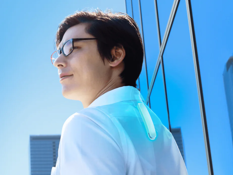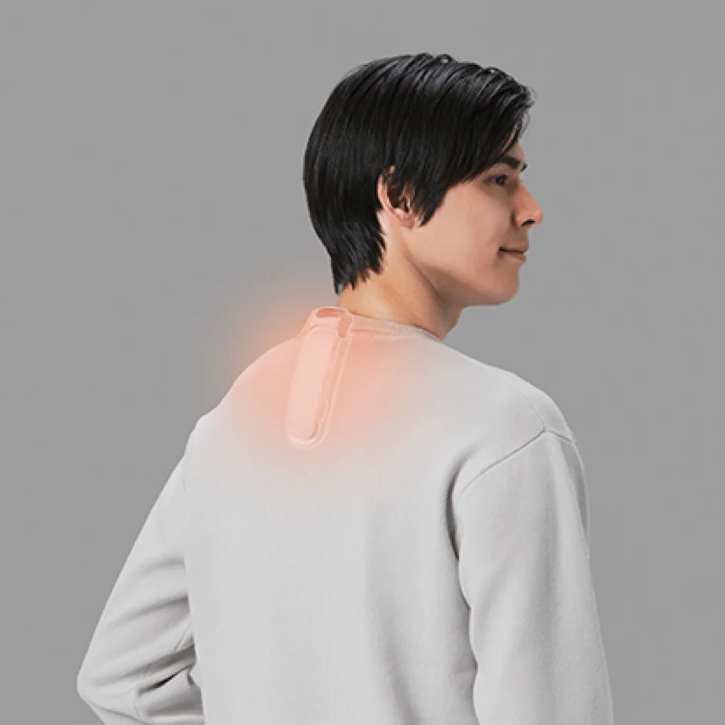 간단히 설명드리자면, 목 뒤쪽에 착용하는 소형 냉·온열 장치로, 여름에는 시원하게, 겨울에는 따뜻하게 활용할 수 있는 사계절용 웨어러블 기기입니다.