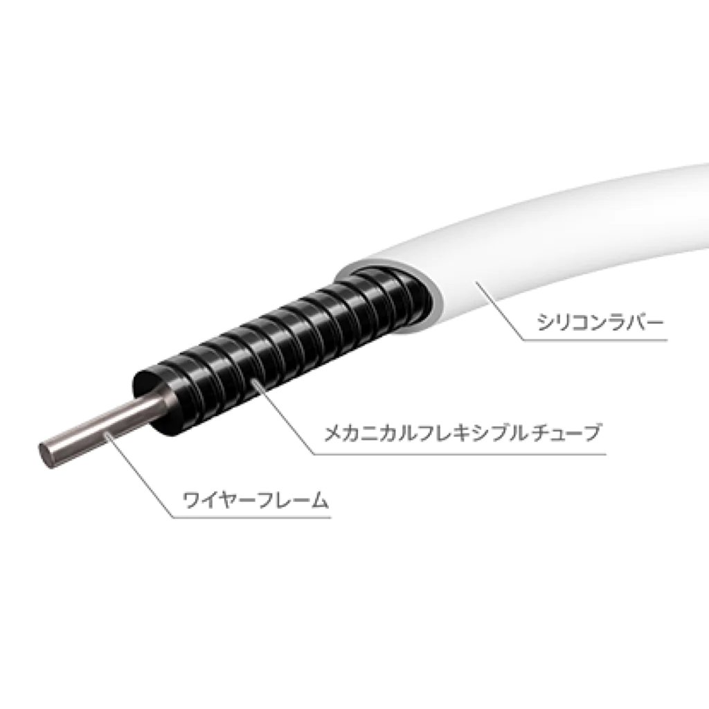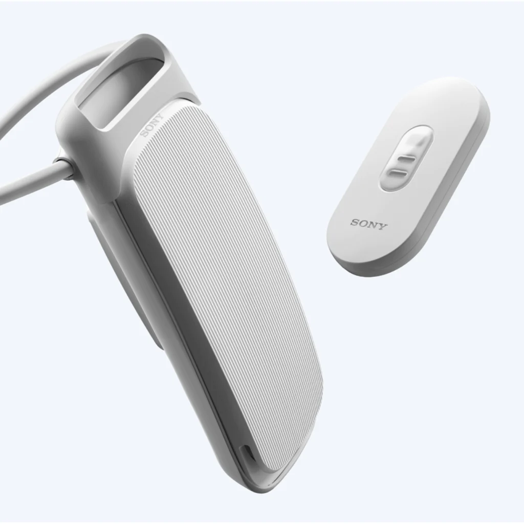착용은 매우 간단합니다. 함께 제공되는 넥밴드(목걸이 형태의 고정 밴드*를 목 뒤에 걸고, 본체를 끼워주기만 하면 됩니다. 넥밴드는 실리콘과 와이어, 튜브의 3중 구조로 유연하지만 단단하게 고정되며, 목의 두께나 스타일에 맞춰 자유롭게 조절 가능합니다.