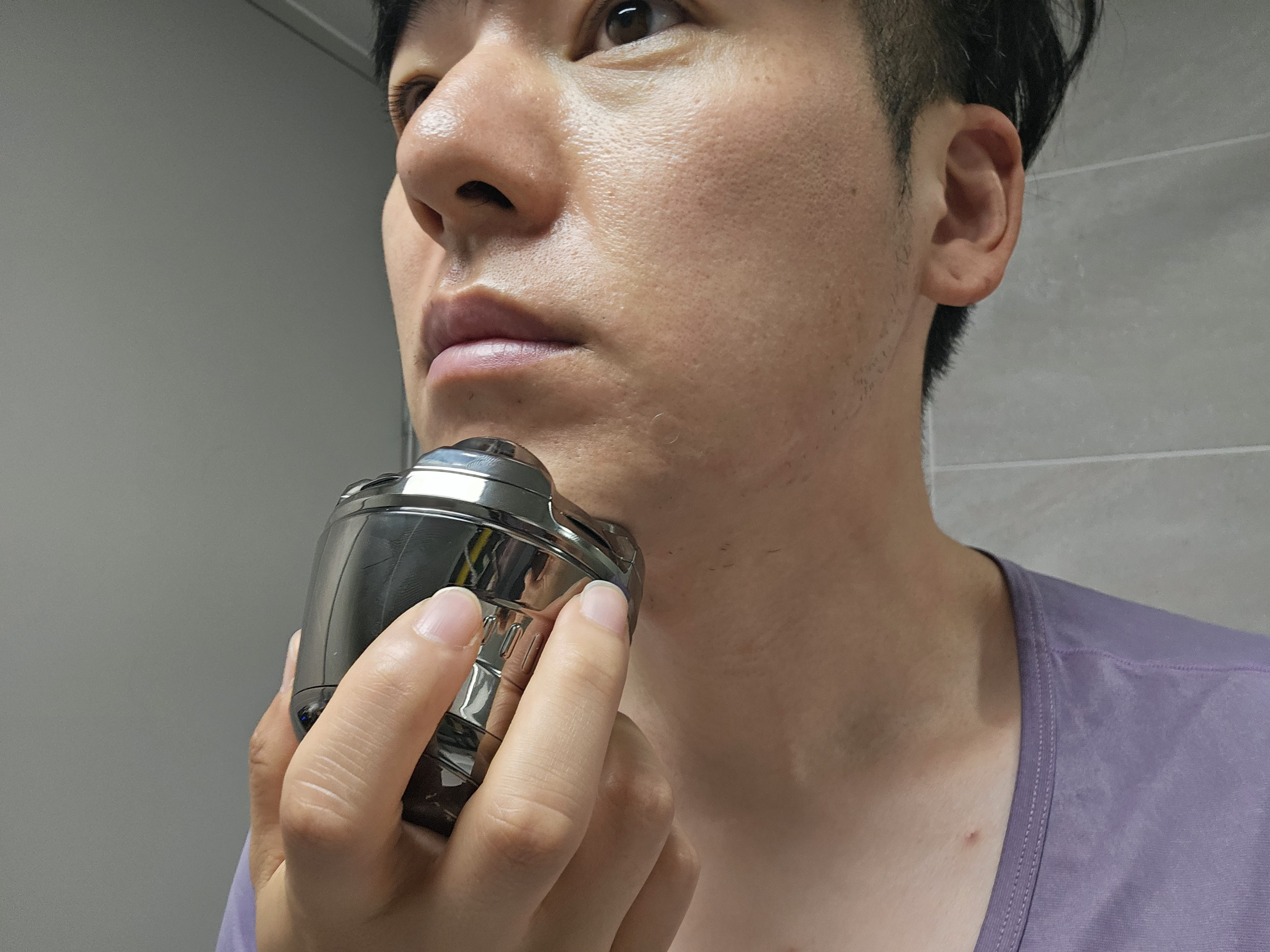 그래서 일반적인 면도기보다 훨씬 넓은 면적을 커버할 수 있고, 입체 플로팅 기술이 적용돼 있어서 얼굴의 윤곽에 따라 헤드가 자연스럽게 움직여요. 실제로 턱선이나 목, 볼처럼 굴곡이 있는 부위를 따라가면서도 자극 없이 부드럽게 면도가 되더라고요.