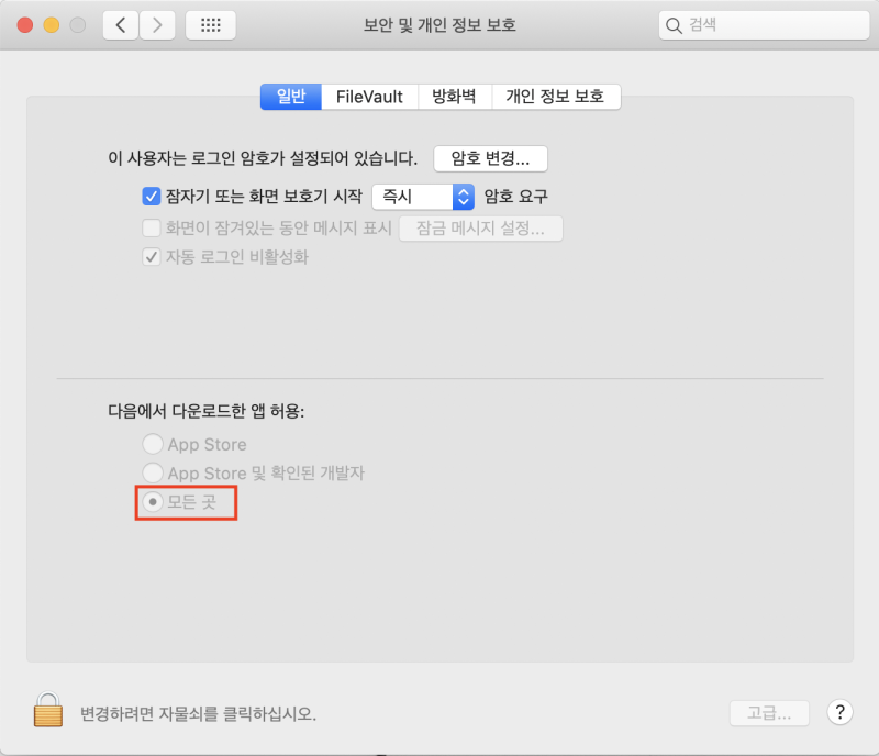 모든 앱에 대해 게이트키퍼를 끄는 것이 부담스럽다면, 특정 앱만 예외로 허용할 수도 있습니다.