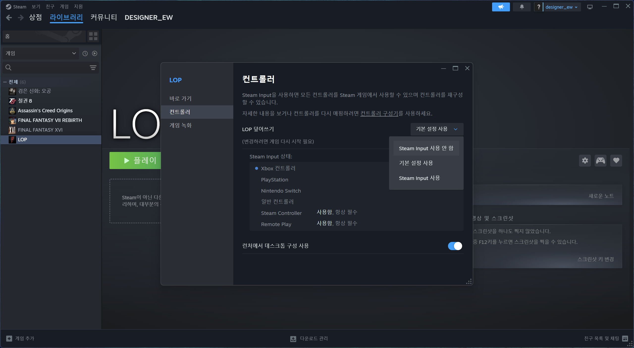 P의 거짓에서 Xbox 패드 인식이 안 될 때 확인해야 할 것들