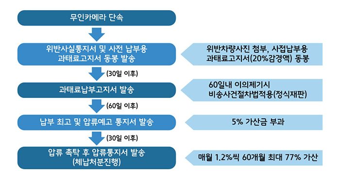 범칙금은 납부 지연 시 20%의 가산금이 붙고, 즉결심판을 통해 벌금형으로 전환될 수 있다. 과태료는 더 복잡하다. 3%의 가산금이 시작되고 이후 매월 최대 75%까지 누적되며, 장기 체납 시 차량 압류나 강제 징수까지 이어질 수 있다. 단순한 실수라도 뒤처리를 소홀히 하면 예상치 못한 금전적 부담으로 돌아올 수 있다.