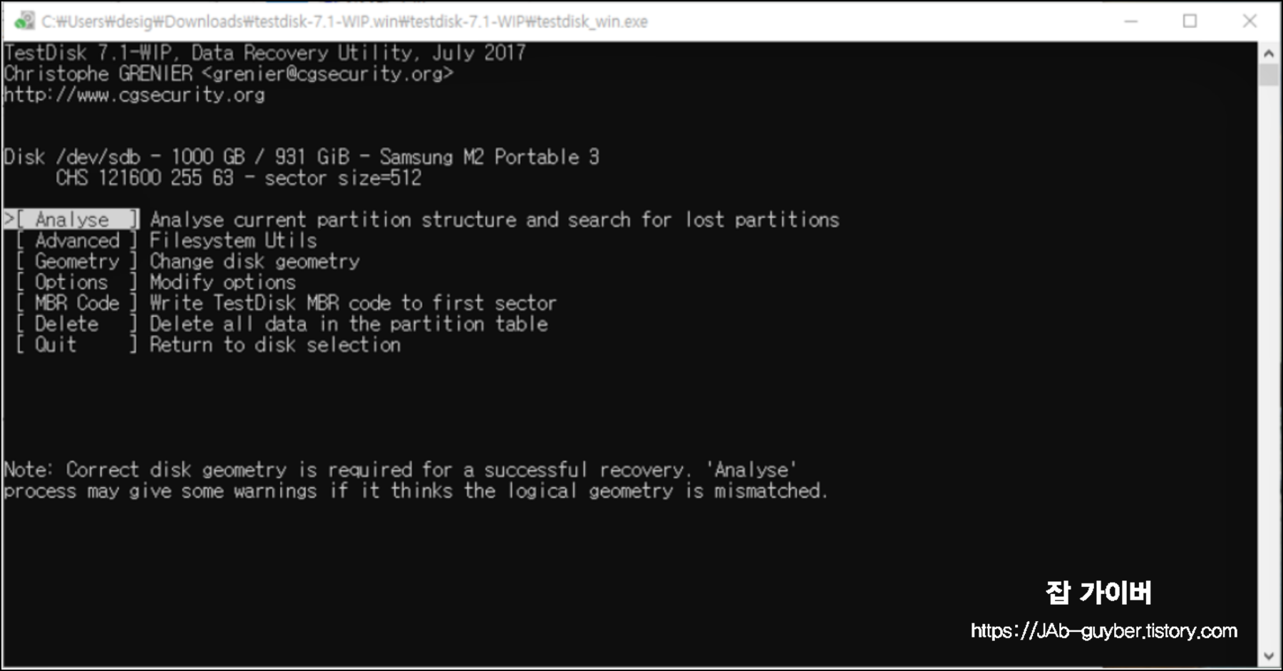 파티션 복구 프로그램 TESTDISK 다운로드 및 명령어 사용법