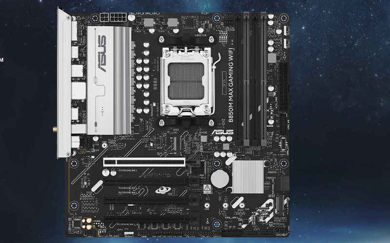 우선 다양한 브랜드에서 B850 칩셋 기반의 메인보드를 출시하고 있으며, 그중 ASUS B850M MAX GAMING WIFI는 M-ATX 폼팩터임에도 불구하고 PCIe 5.0 그래픽카드 슬롯을 다수 탑재하여 확장성과 실사용성을 동시에 잡은 모델로 주목받고 있다.