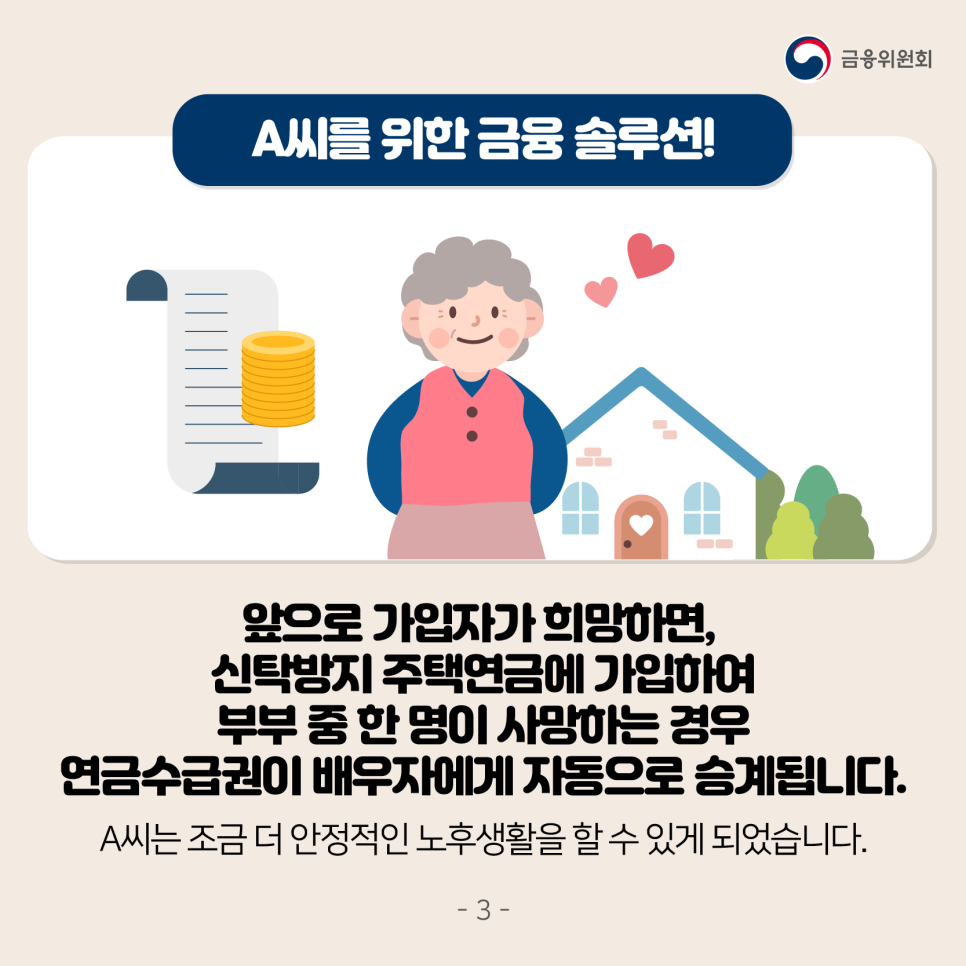 부부 중 한 사람이 사망하더라도 연금액이 줄어들지 않고 동일하게 지급됩니다. - 상속 시 부담 없음