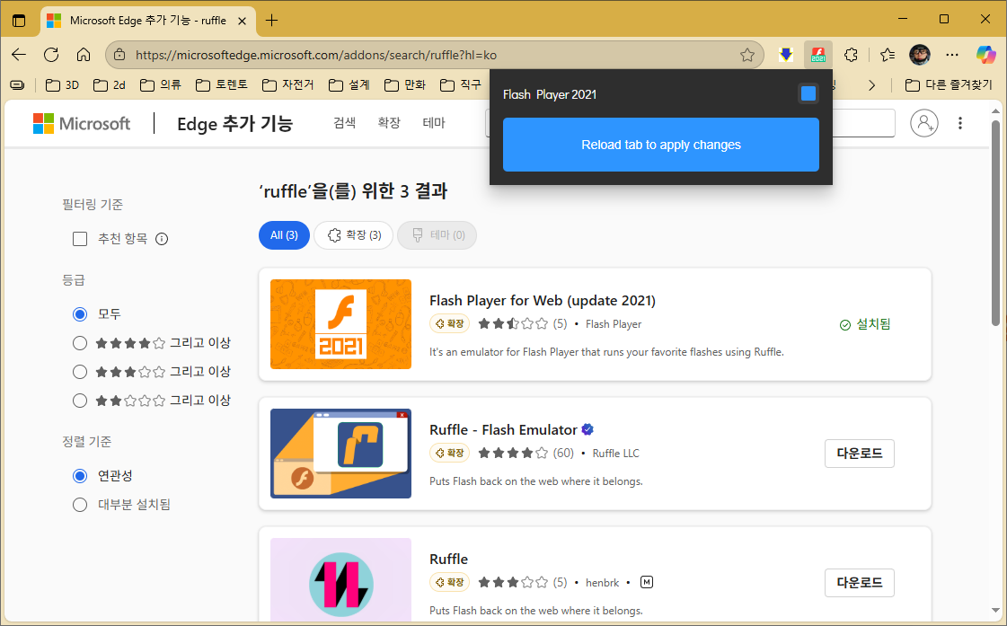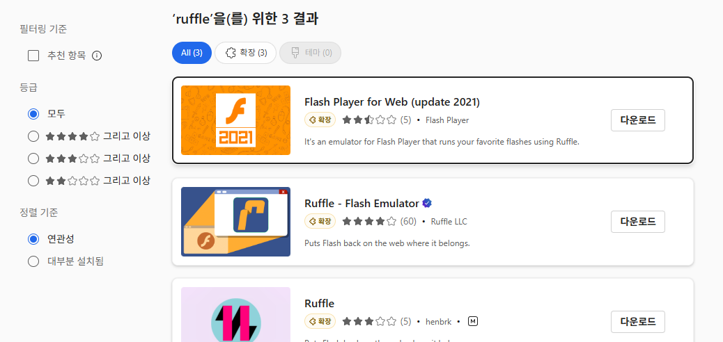 - Flash Player for Web (update 2021) 확장 프로그램 설치