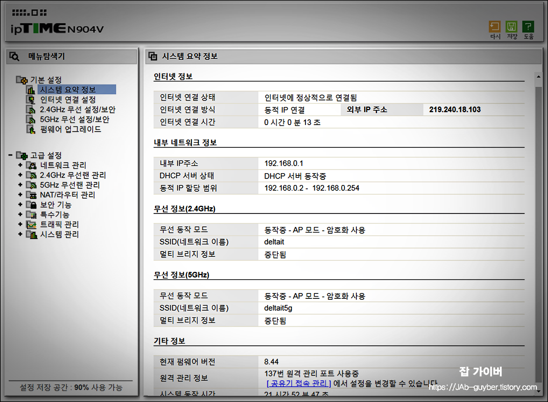 그럼 정상적으로 ipTIME N904V 접속되는것을 볼 수 있습니다.