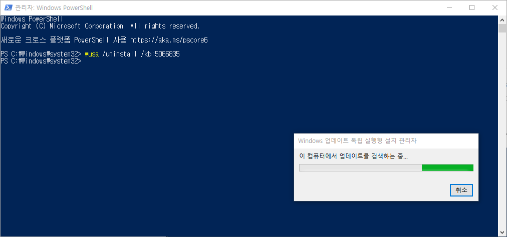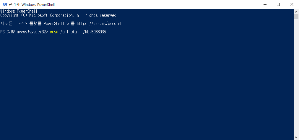KB5066835 업데이트 항목 삭제 명령어는 PowerShell에서도 간단하게 처리할 수 있어 CLI 사용 환경이 익숙한 개발자라면 아래 명령을 활용하는 편이 더 빠릅니다