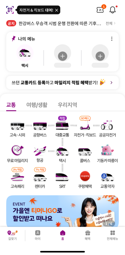 여기에 티머니고 앱까지 연동하면 GO마일리지라는 형태의 추가 적립이 발생합니다.
