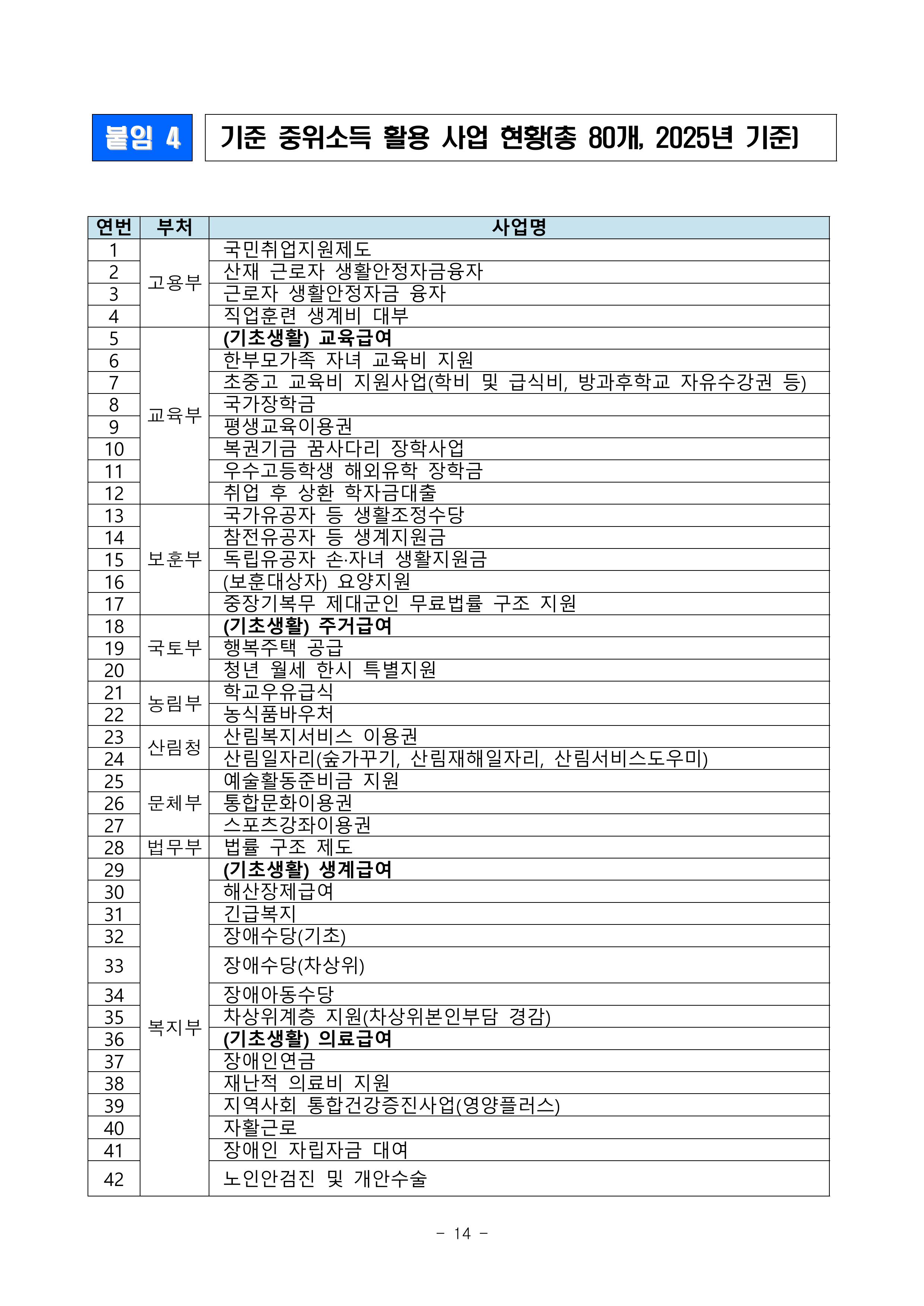 | 급여 | 기준중위소득 비율 | 2025년 (1인) | 2026년 (1인) | 변화 |