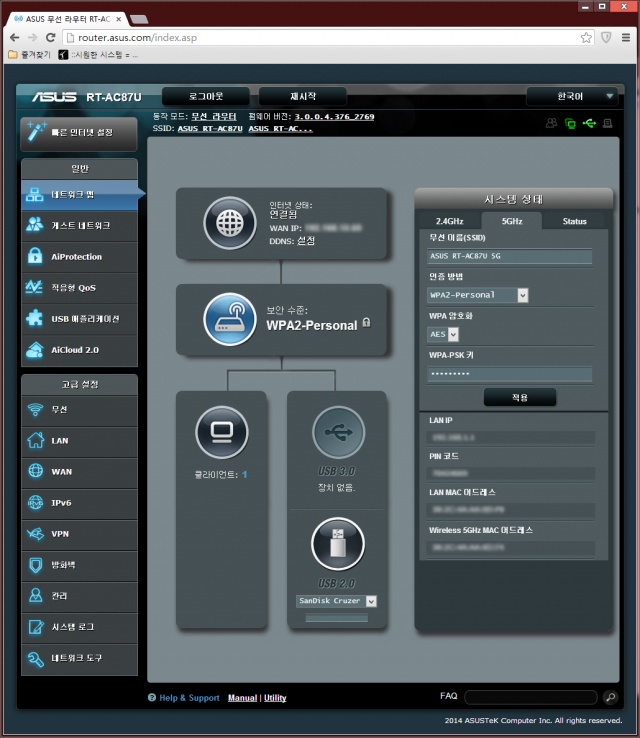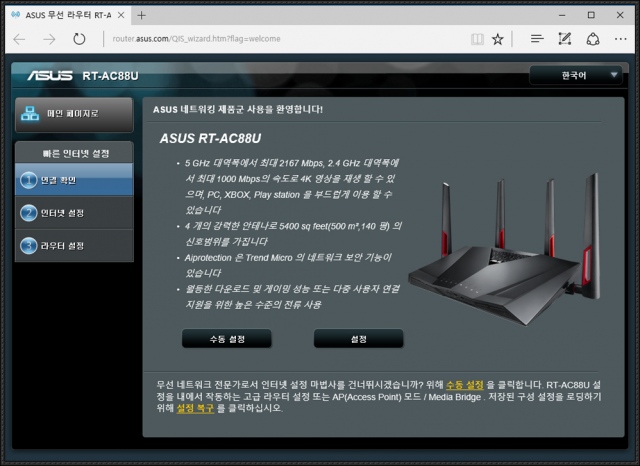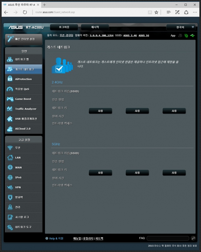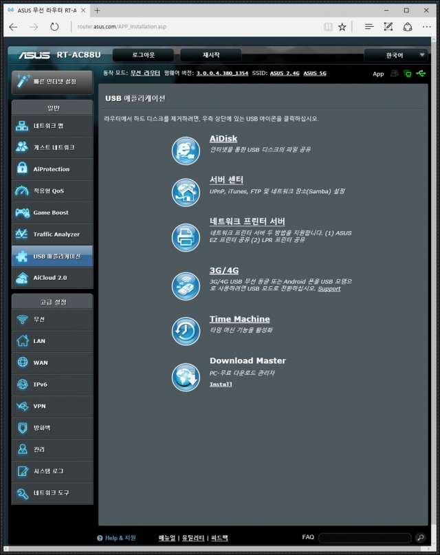 - 공유기 페이지 자동 실행 또는 router.asus.com 입력