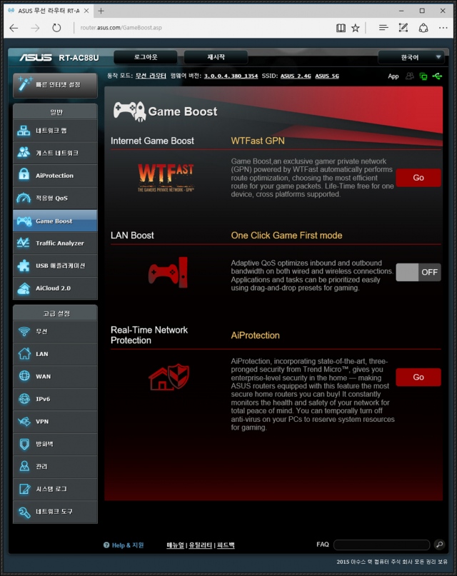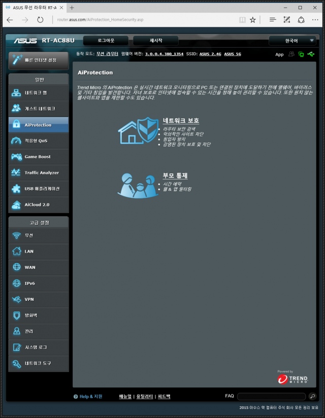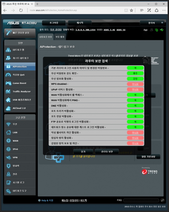 | 보안 강화 | AiProtection ON | 트래픽 감시·가정 보안 강화 |