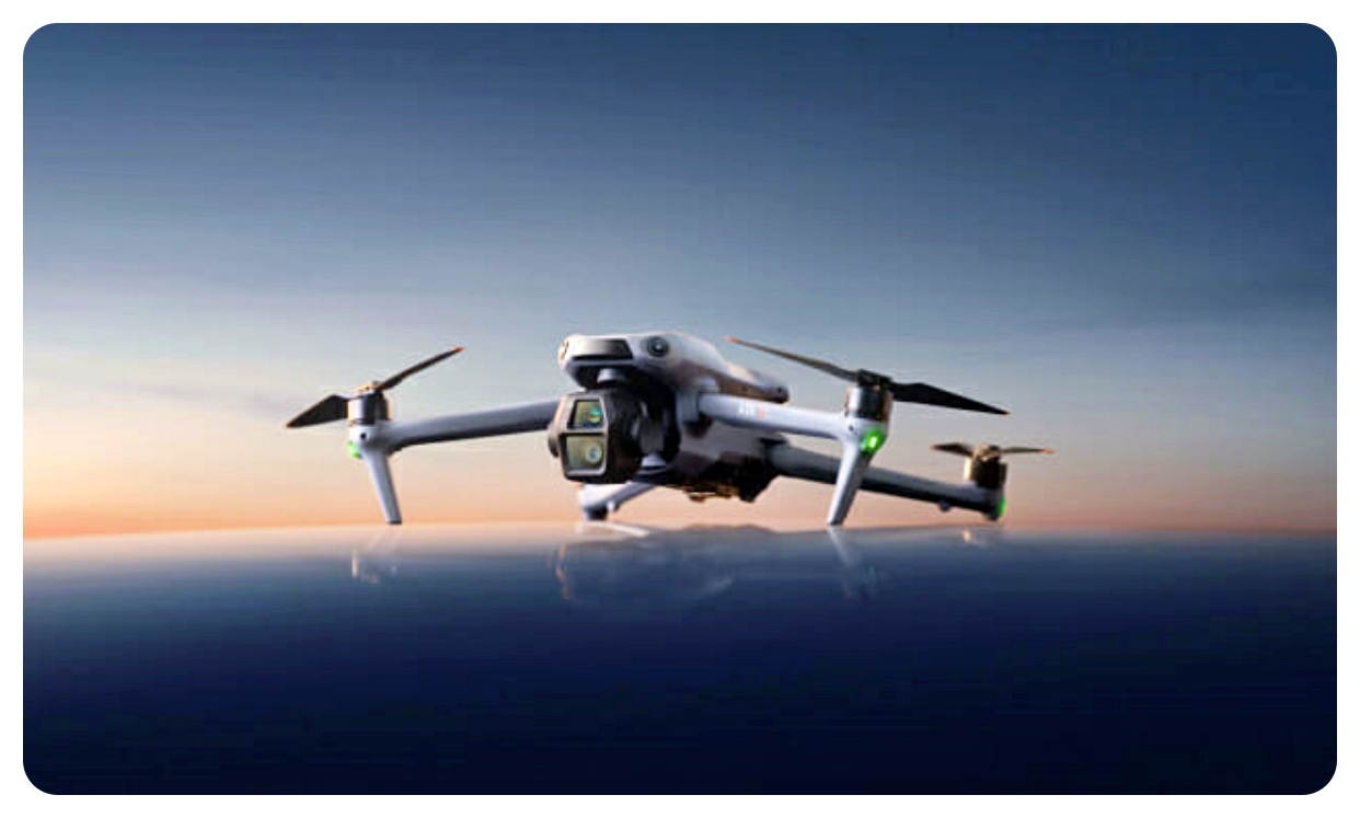 Air 3S는 1인치 CMOS 메인 카메라와 70mm 중망원 카메라를 갖춘 듀얼 카메라 드론으로, 여행·상업 촬영까지 아우를 수 있는 급이다.