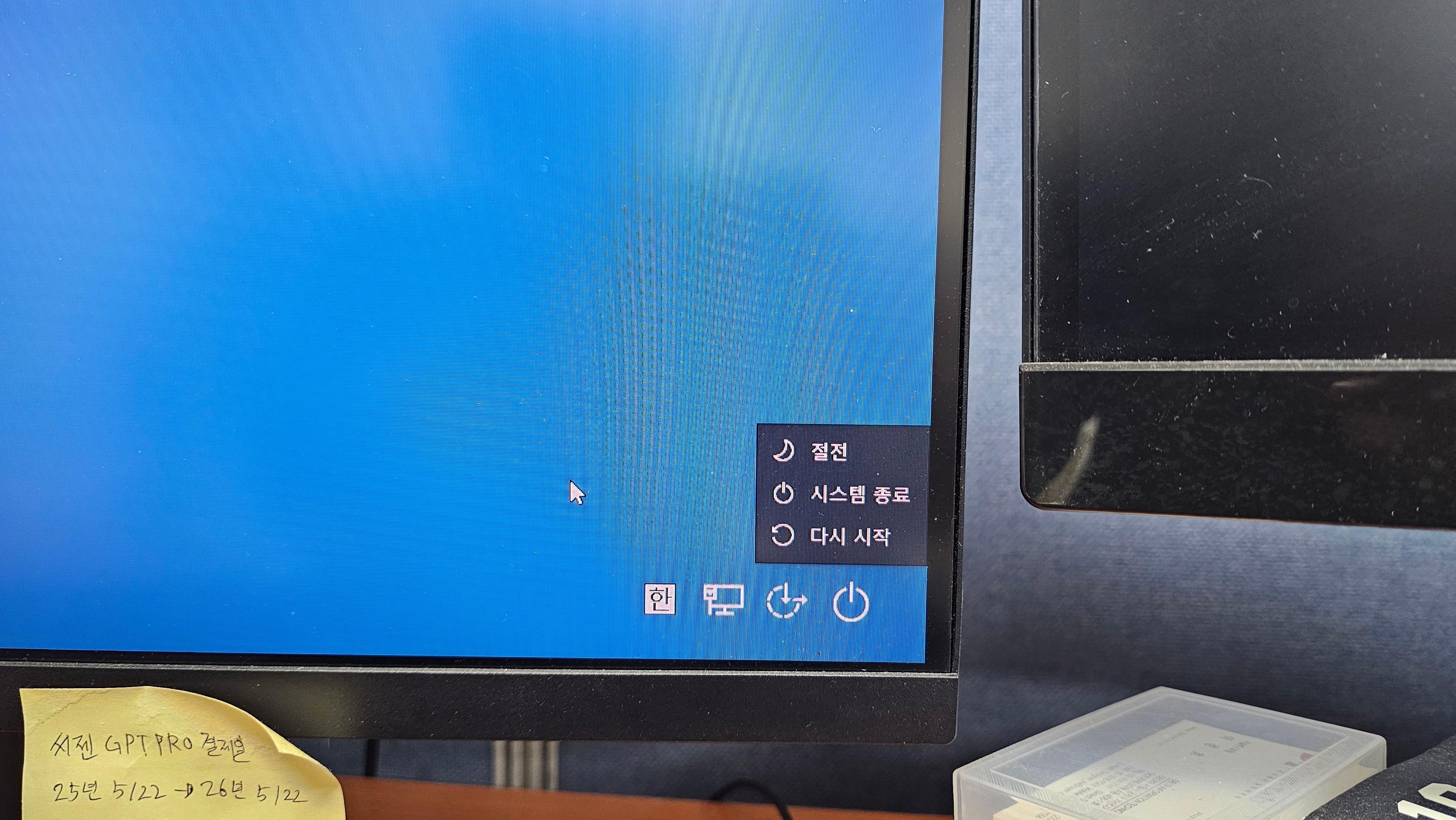 | Ctrl + Alt + Del → 전원 버튼 | 보통 화면에서 재시작 선택 |