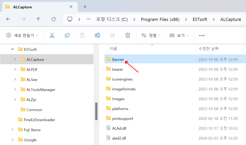 알캡처 폴더로 이동한 뒤 [Banner] 폴더를 삭제합니다.