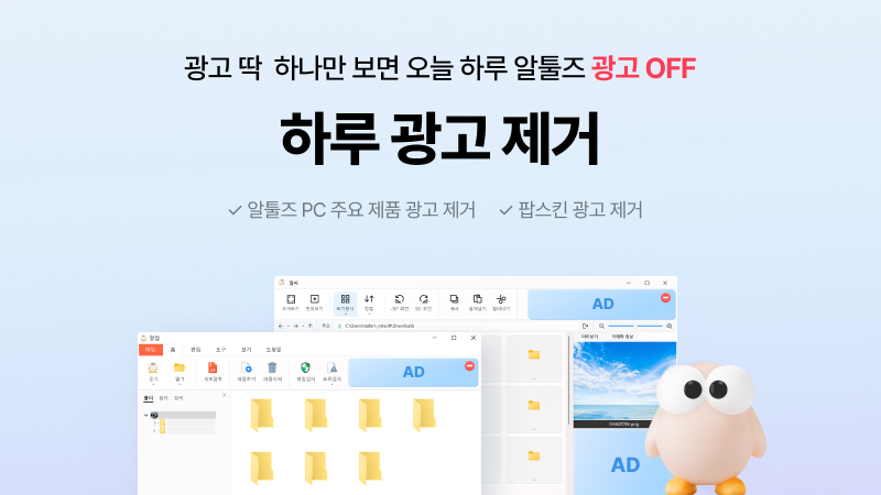 가장 정석적인 방법은 알툴즈 유료 버전을 사용하는 것입니다. 유료 버전에서는 광고가 기본적으로 표시되지 않고, 일부 제품은 추가 기능이 함께 제공되기도 합니다.