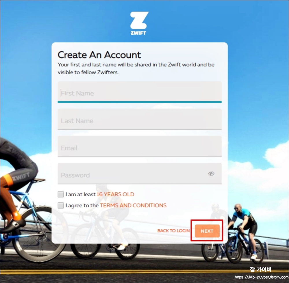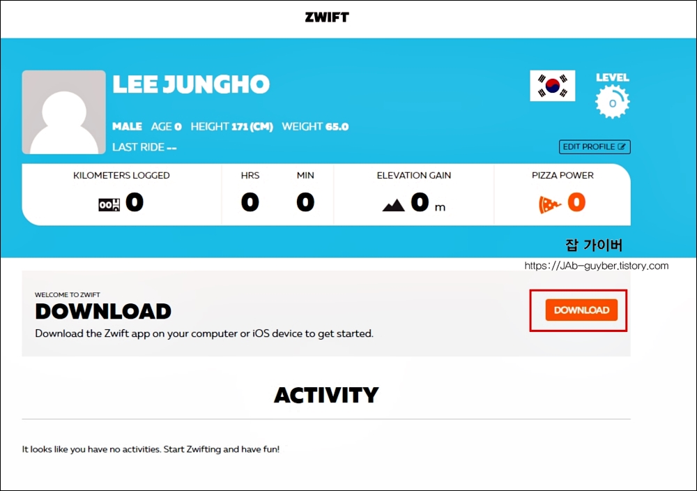 Zwift 공식 사이트에 접속하면 회원가입 후 설치 파일을 받을 수 있습니다.