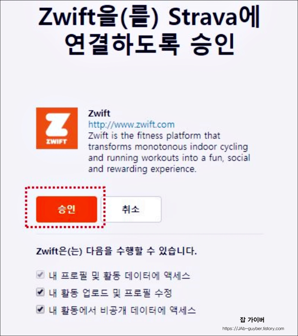 연동 방법은 간단합니다. 즈위프트 웹사이트에 로그인한 뒤,